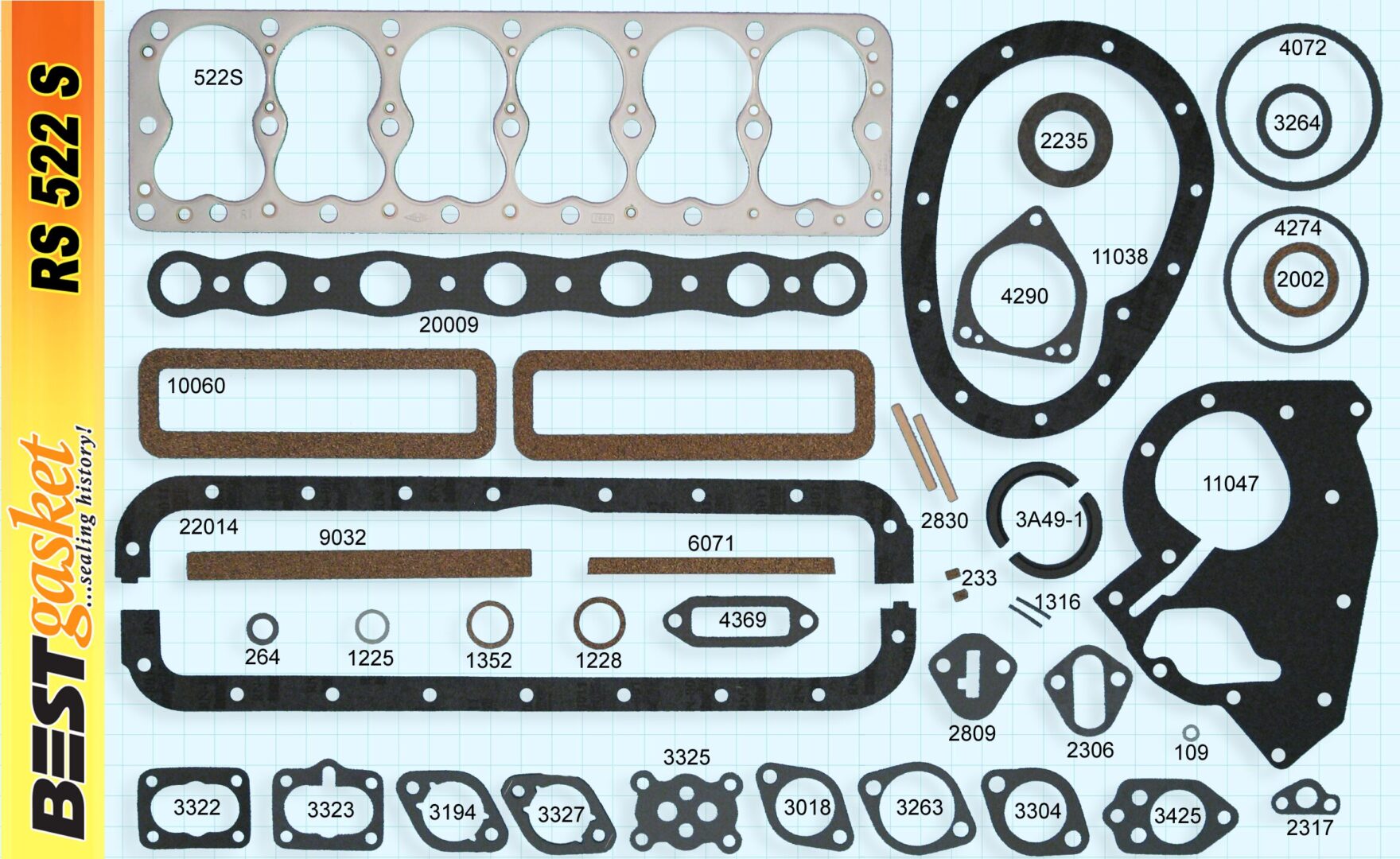 1939-54 Studebaker 6 Champion engine rebuild gasket set