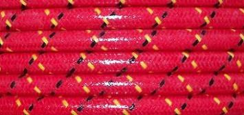 Suppression wire made to look like the old-fashioned lacquered cloth wire. Red cotton braid with black and yellow tracer over EDPM silicone. Insulated with spiral wound suppression core.